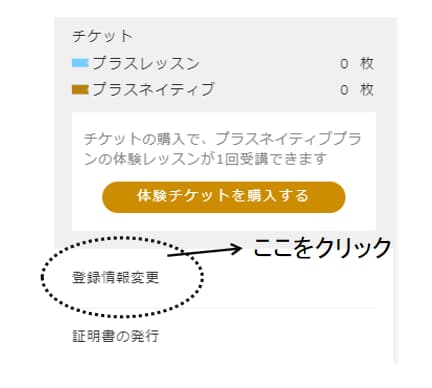 2. カーソルを合わて表示された所の真ん中ぐらいにある「登録情報変更」をクリック